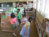 1年生が、図書室の本を借りました。自分で選んだ2冊の本を、カウンターにもっていき、先生に自分の名前を言って、パソコンを使って貸出の手続きをしてもらっていました。たくさんの本の中から、お気に入りの本を選んだ子ども達は、わくわくして、早く読みたいという気持ちを笑顔で表現していました。