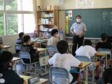 6年生の学級活動の時間に、中学校の先生に来ていただき、“中学生への準備”についての話をしていただきました。話を聞く準備には、表情・姿勢・言葉で反応することが大切であることや、将来の夢をどう実現していくかなどの話をしていただき、子ども達は、真剣な表情で聞いたり返事をしたりしていました。