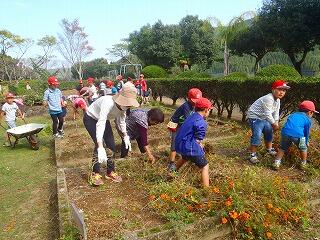 パンジー、ノースポール、キンギョソウを、ボランティアの皆さんに手伝ってもらって、丁寧に植えました。