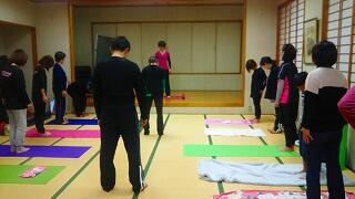 はじめに姿勢確認を行い、バランスのとれた体、体のコントロールを中心にストレッチを行い、日頃動かしていない体に悲鳴を上げながらがんばりました。