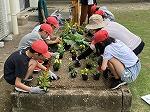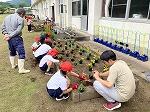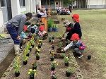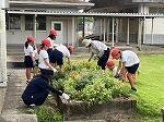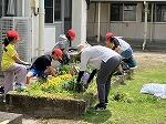 よわらっこタイムで、全校で花壇をきれいにしました。