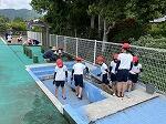 今回は、全校団技の「大玉ころがし」の練習を全校で行いました。