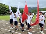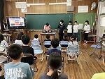 榎原小学校の体育館で、小中合同の結団式を行いました。