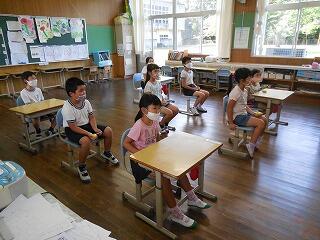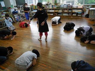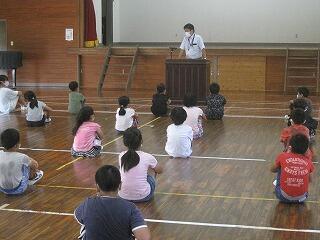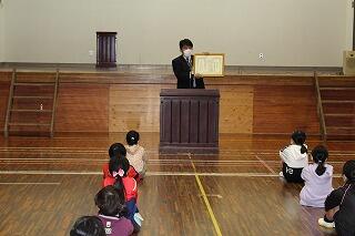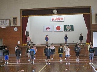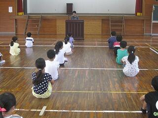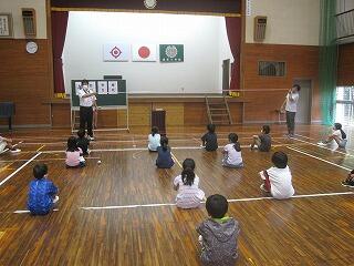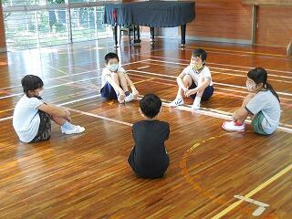 2年・3年・4年の集会では、体育館を広く使