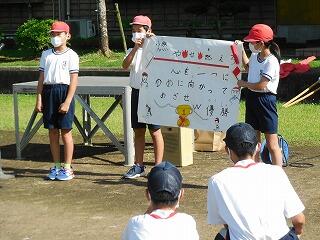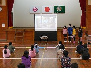1年・5年・6年の集会では、6年生による読