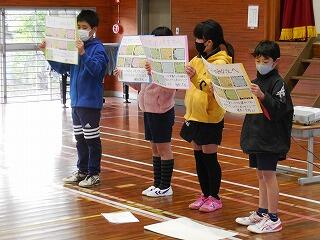 1月23日(月)の朝の活動で、3・4年生が中心となった学年部集会を行いました。
