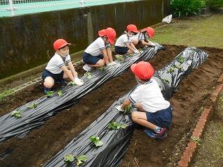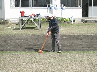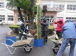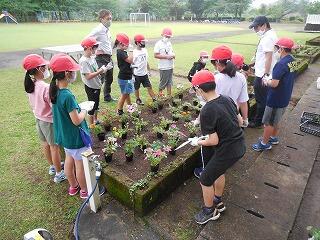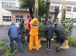 小雨の降る中、毎年ご指導くださる河野様に教えていただきながら、PTA役員と学校職員とで作業を行いました。