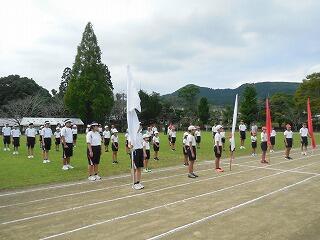 運動会へ向けて中学生と一緒に、整列・行進・徒競走