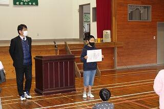 代表児童の作文発表があったり、表彰があったりしました。