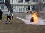 避難の練習に加えて、職員による119番の通報訓練、職員と児童の代表による消火訓練も行いました。