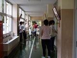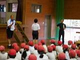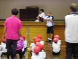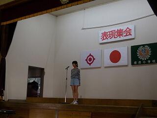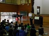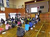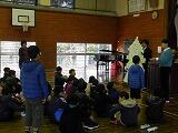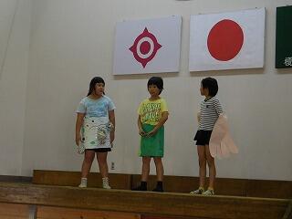 保健・体育委員会からは、「外遊びのアンケート」結果や運動用具の片付け方などのお知らせをしました。アンケートの中で「何をして遊びたいですか?」については、1位「卓球」2位「バレーボール」3位「バトミントン」4位「バスケット」でした。アンケートのお知らせ後、インフルエンザ予防のために「手洗い」を呼びかけました。「Happy birthday」の曲の替え歌に合わせ、楽しく手洗いができるように模範を示して呼びかけました。