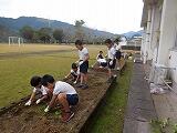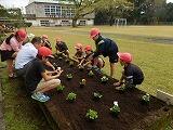 学校を花いっぱいにしていきます。14日に「花いっぱい運動」で花壇にパンジーなどの花を植えました。鉢植えもしました。一人一鉢で育てたり、二人で一鉢の花を育てたりもしていきます。元気な花を育てていきます。