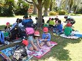 昼食時間は、「お弁当の日」の取り組みで各自で作った「おにぎり」をおいしくいただきました。また、帰りは、雨のため清武総合運動公園に行けなかったので、木花小学校の体育館を借りて、ゲームなどをして楽しい時間を過ごしました。