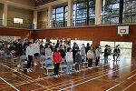 榎原小学校の体育館で、小中合同の結団式を行いました。