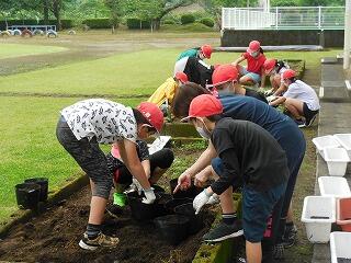 優しく丁寧に教えていただき、上手に植えることができ、1・⒉年生は満足そうにしていました。