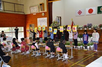 また在校生の2,3年生がお祝いの言葉と歌を披露し、