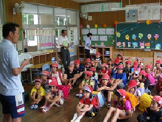 あいにくの雨のため,室内での講習とビデオ鑑賞になりました。