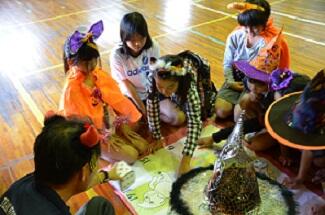 子どもたちは,思い思いの仮装をして,楽しんで活動していました。