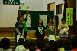2年生が劇を披露し、小学生全員で歌のプレゼントをしました。
