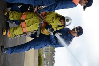 消防署と興南防災の方々に来ていただき,実際の消火活動の体験も行いました。