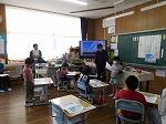 朝会の短い時間ではありましたが、戦争当時のことや教室のつくり、給食、遠足等、とても分かりやすくお話をしていただきました。子どもたちは、時々おどろきの表情を見せながら聞き入っていました。貴重な時間とお話をいただきありがとうございました。