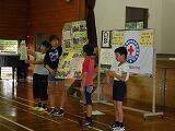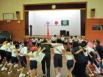 終業式の後に「体力証」の表彰や水泳記録会に代表として出場する5・6年生児童への激励、「夏休みの過ごし方や決まり」についてお話をしました。夏休みも楽しい思い出をたくさんつくってほしいと思います。