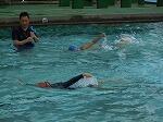 最後にみんなで大波づくりをしました。そして、プールに黙想の後、お礼を言いました。今年も安全にプールを納めることができました。ありがとうございました。