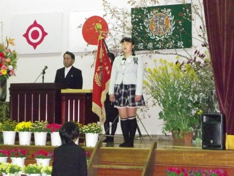 榎原小学校第109回卒業式がありました。男子1名、女子5名の6名が、卒業していきました。雨が降っていましたが、卒業式には、多くのご来賓の皆様方にもご臨席いただきました。式では、卒業生一人一人が、自分の将来の夢や目標を発表しました。目標が達成できるようにがんばって欲しいですね。