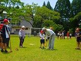 本日、3・4校時に毎年恒例行事になっている地域の方々と全校児童で「ふれあいの会」でグランドゴルフをしました。初めてグランドゴルフをする1年生も、地域の方々に教えられ楽しくプレーをすることができました。歓声と笑顔に包まれたふれあいの時間を過ごすことができました。ありがとうござました。