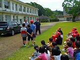 昨日の集中豪雨から一転した晴天の下、子ども達は、タイヤ跳びやサッカー、ブランコ、虫取りなどで運動場を走り回ったり、歓声をあげたり汗だくになり遊んでいました。
