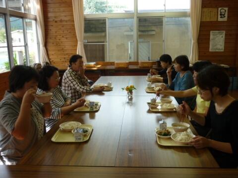 家庭科室からいいにおいがしていました。のぞいてみると、ごはんと味噌汁などを作っていました。4名の学習ボランティアの皆さんにも包丁の使い方などを支援していただき、美味しくできあがりました。