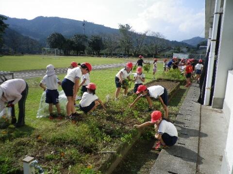 学校から約2㎞の所にある「鯛取ふれあい公園」に全校みんなで歩いて行きました。公園では、下級生が6年生に感謝の気持ちを込めた発表をしたり、プレゼントをあげたりしました。6年生も発表をして、下級生一人一人にお手紙を渡しました。その後、みんなでゲームをしたり、お弁当を食べたりして、楽しい遠足になりました。