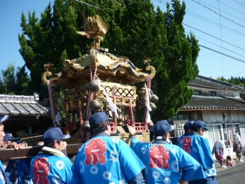 6日の午前中、榎原神社のお祭りがありました。榎原神社から参道を歩き、地区公民館までを往復しました。途中で、踊りや獅子舞などがあり、とても賑わいました。