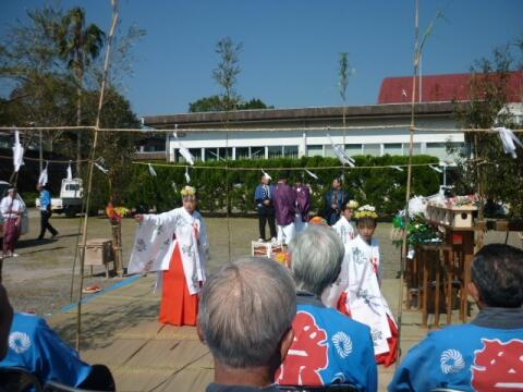 5日の夜、榎原神社で地域の伝統行事の一つである「浦安の舞い」がありました。毎年、希望した高学年の女子が、この伝統の舞いを引き継いでいます。