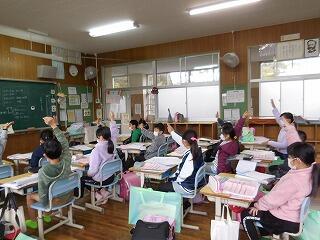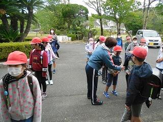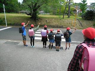 榎原小学校の子ども達全員が、元気な様子で登校して、みんなで