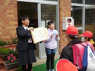 10日ぶりにみんな元気に登校しました。久しぶりにお友達と会えて、みんな嬉しそうでした。短い時間でしたが、各学級で近況確認や課題配付、作品整理等を行ったり、下校時には、休業になりできなかった「旅する読書100冊」の表彰をしたりしました。