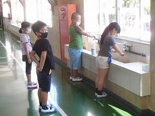 今日は、全員が元気で登校する中で、感染を防ぐた
