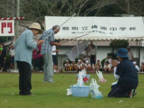PTAや来賓等の競技を紹介します。運動会の立派な入場門は、地域の方から竹をいただき、それを保護者の協力で完成させました。また、保護者の皆様方には、競技中の用具の準備やPTA競技への参加など、終日お世話になりました。ありがとうございました。