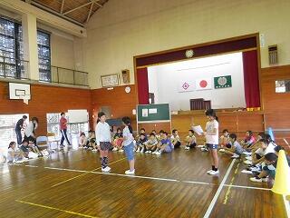 昼休み時間は、ALTのブライアント先生と全校で遊びました。昼休み時間が終わると汗びっしょりの子どもたちでした。