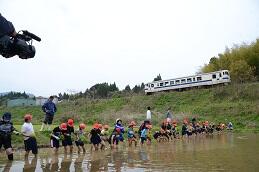 田植えと汽車の風景