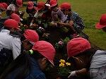 今日は、全校児童で花の苗植えをしました。みんなで協力をして植え方の位置を相談して、手際よく植えました。「マリーゴールド」「ポーチュラカ」「インパチェンス」の花でいっぱいになりました。お世話をして元気な花にしていきましょう。