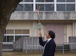 明日の創立記念日の当日は、学校始業時、1校時の合図は、鐘を鳴らします。鐘を鳴らし、全校でお祝いをします。