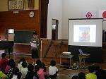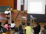 朝会の短い時間ではありましたが、戦争当時のことや教室のつくり、給食、遠足等、とても分かりやすくお話をしていただきました。子どもたちは、時々おどろきの表情を見せながら聞き入っていました。貴重な時間とお話をいただきありがとうございました。