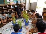 全校朝会の後、「バケツ稲刈り」をしてお米学習をしました。予定では、3年生以上は、田んぼにいっての「稲刈り」でしたが、前日までの大雨の為、中止となり、低学年が育ててきた「バケツ稲」を全校児童で刈り取りました。JA青年部の方を講師としてお招きして、お米について詳しくお話をしていただきました。子どもたちも目の前にある稲穂から多くの疑問を出していました。短い時間でしたが、有意義な時間を過ごすことができました。ありがとうございました。