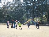朝は、寒いですが、お昼休み時間になると運動場もぽかぽかです。子どもたちは、1月から仲良し班で、長縄跳びの練習をしています。1年生も上級生の教えの下に上手に跳べるようになっています。各班、張り切っています。