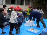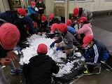 まず、始めに雪を届けてくださっている高橋様のお友達の野川様から、お話を聞きました。そして、お礼を述べた後、さっそく雪に接する時間です。箱の中から雪が見えた瞬間、子どもたちから歓声があがりました。雪だるまを作ったり、雪合戦をしたり楽しい時間を過ごすことができました。ありがとうございました。