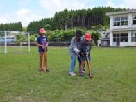 地域の高齢者の方とグラウンドゴルフをしました。おじいさん、おばあさんにやり方を教わりながら、楽しく交流することができました。地域のみなさま、ありがとうございました。