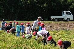 4月に植えたお米が見事に実り、全校児童で稲刈りをしました。