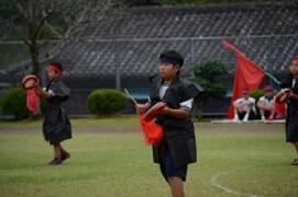 白団、赤団の団長やリーダーの紹介や応援の練習をしました。