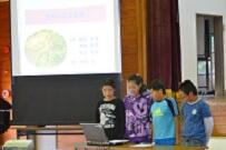 3・4年生は、飫肥杉について調べたことをスクリーンを使って発表しました。